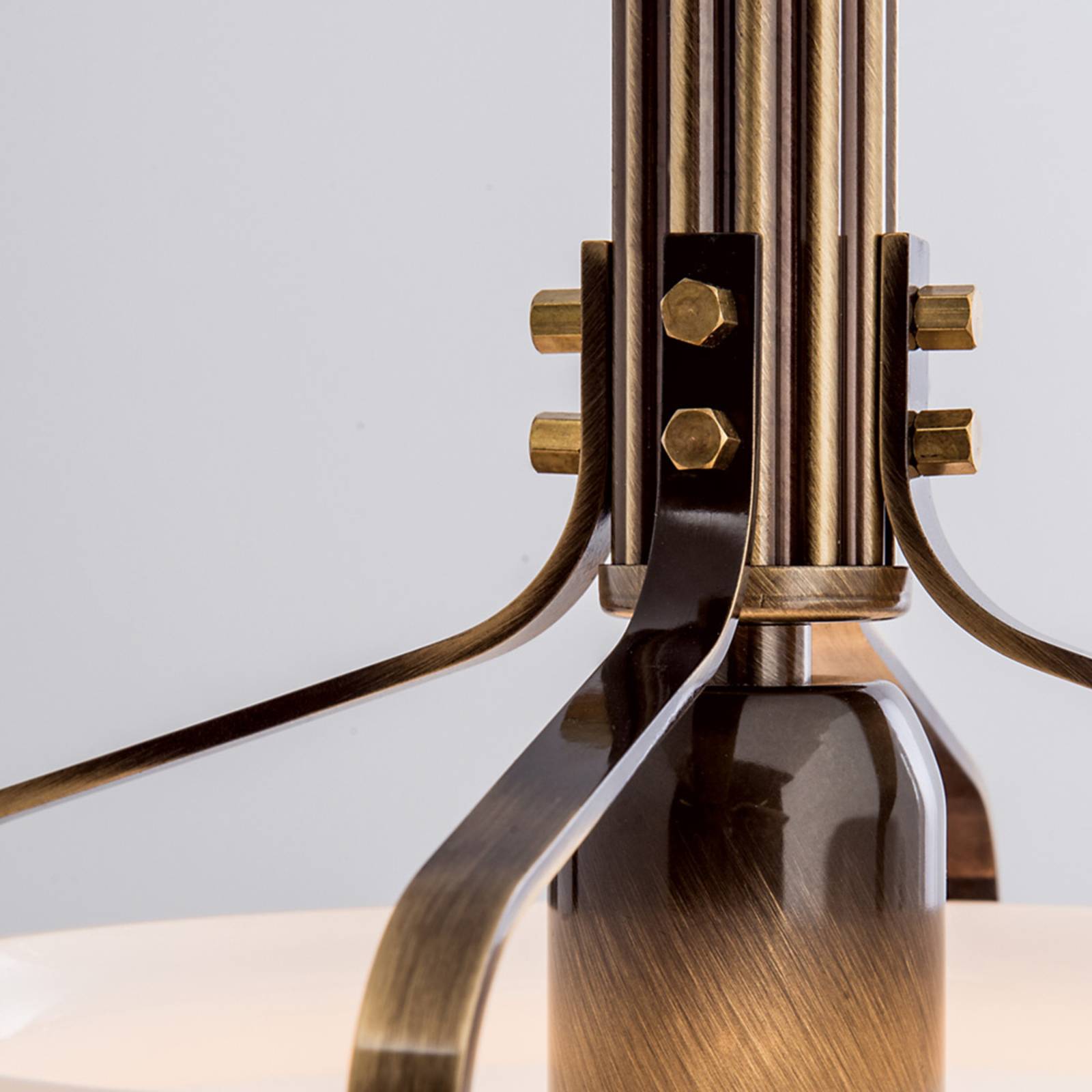 Elegante lampada a sospensione DELIA con luce bianca calda La lampada a sospensione DELIA offre la combinazione di un supporto al soffitto strutturata da diverse stecche con un paralume di vetro panciuto. Questo vetro opalino con superficie opaca consente una luce molto chiara e anche un'ampia diffusione in tutto l'ambiente. La struttura elegante è garantita dalla superficie sfumata a mano in ottone. In questo modo l'oggetto con un'altezza di 45 cm e un diametro di 35 cm ha un aspetto piuttosto compatto. Può essere dimmerato tramite un modulo separato ed è quindi adattabile alla struttura e all'illuminazione dell'ambiente. Possono essere impiegate le lampadine a LED o a basso consumo con attacco E27.