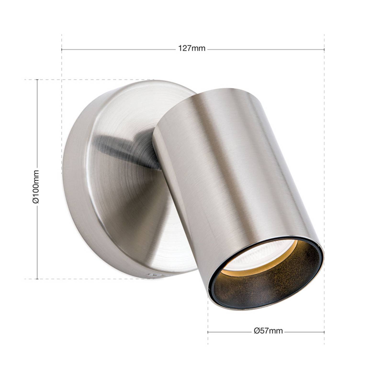 Spot a parete monolampada Sean - può anche essere montato a soffitto Design innovativo e una testa dell'apparecchio che può essere ruotata di 355° - ecco come si presenta il faretto da parete Sean, che fornisce una potente illuminazione d'accento in soggiorni e camere da letto che può essere diretta come richiesto. In questo modo, le aree scure possono essere illuminate efficacemente o la messa a fuoco può essere diretta verso oggetti speciali nella stanza. Con la sua finitura in nichel satinato opaco, il faretto da parete monolampada Sean, che può anche essere montato a soffitto, si abbina perfettamente a molte varianti di arredamento moderno. - dimmerabile esternamente - Inserto riflettore nero