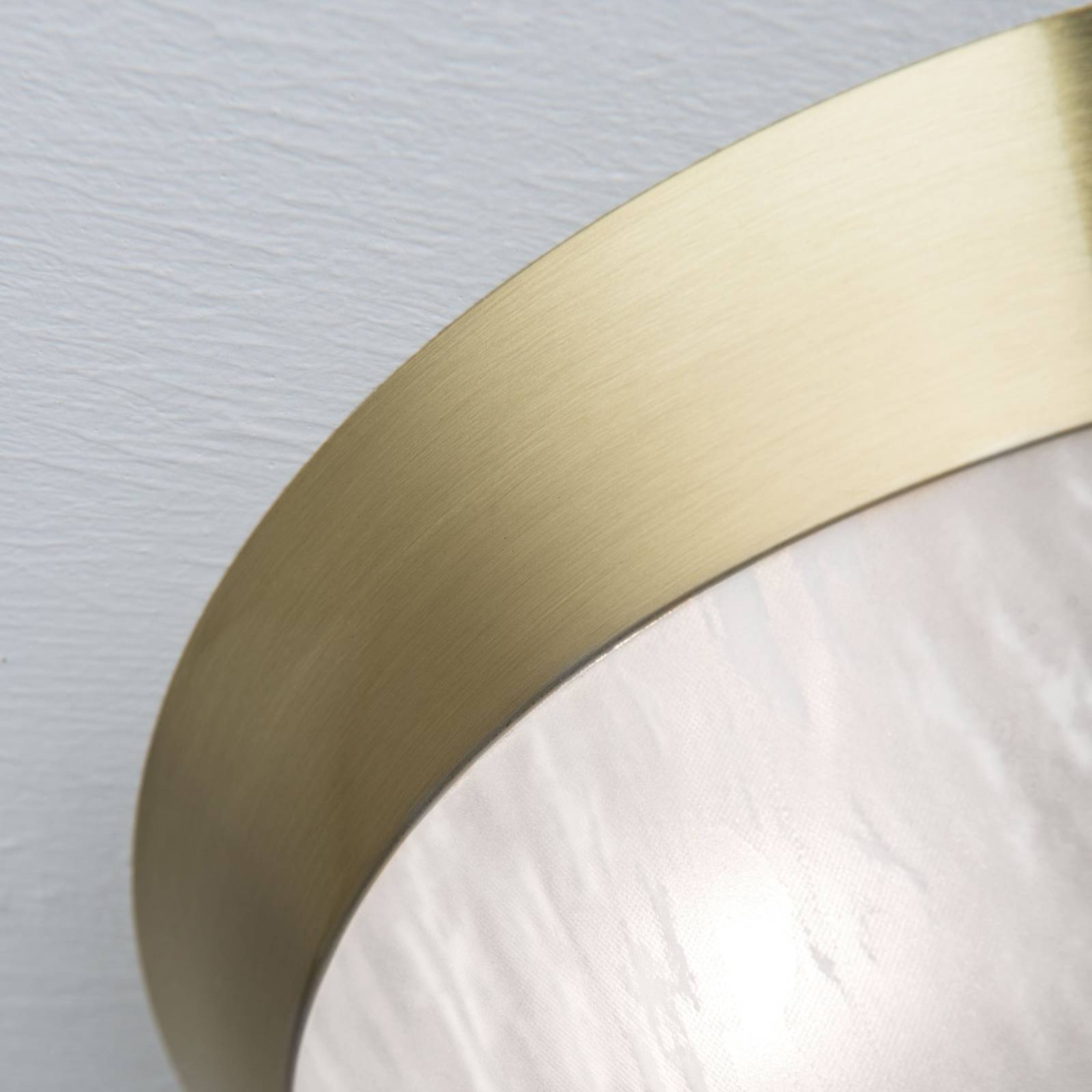 Plafoniera di vetro Jaya nel design classico sobrio Composta da una copertura di vetro quasi semisferica decorata con un bordo metallico in ottone opaco e un elemento metallico al centro del vetro, la plafoniera Jaya è un rappresentante classico del suo genere che, grazie al suo design piuttosto sobrio, si adatta anche a qualsiasi stile di arredamento moderno. La dotazione con lampadine E27 è prevista sia con lampadine convenzionali che con lampadine moderne a LED. Jaya è quindi una fonte luminosa utilizzabile in modo versatile in quasi tutti gli ambienti. Utilizzabile anche come applique.