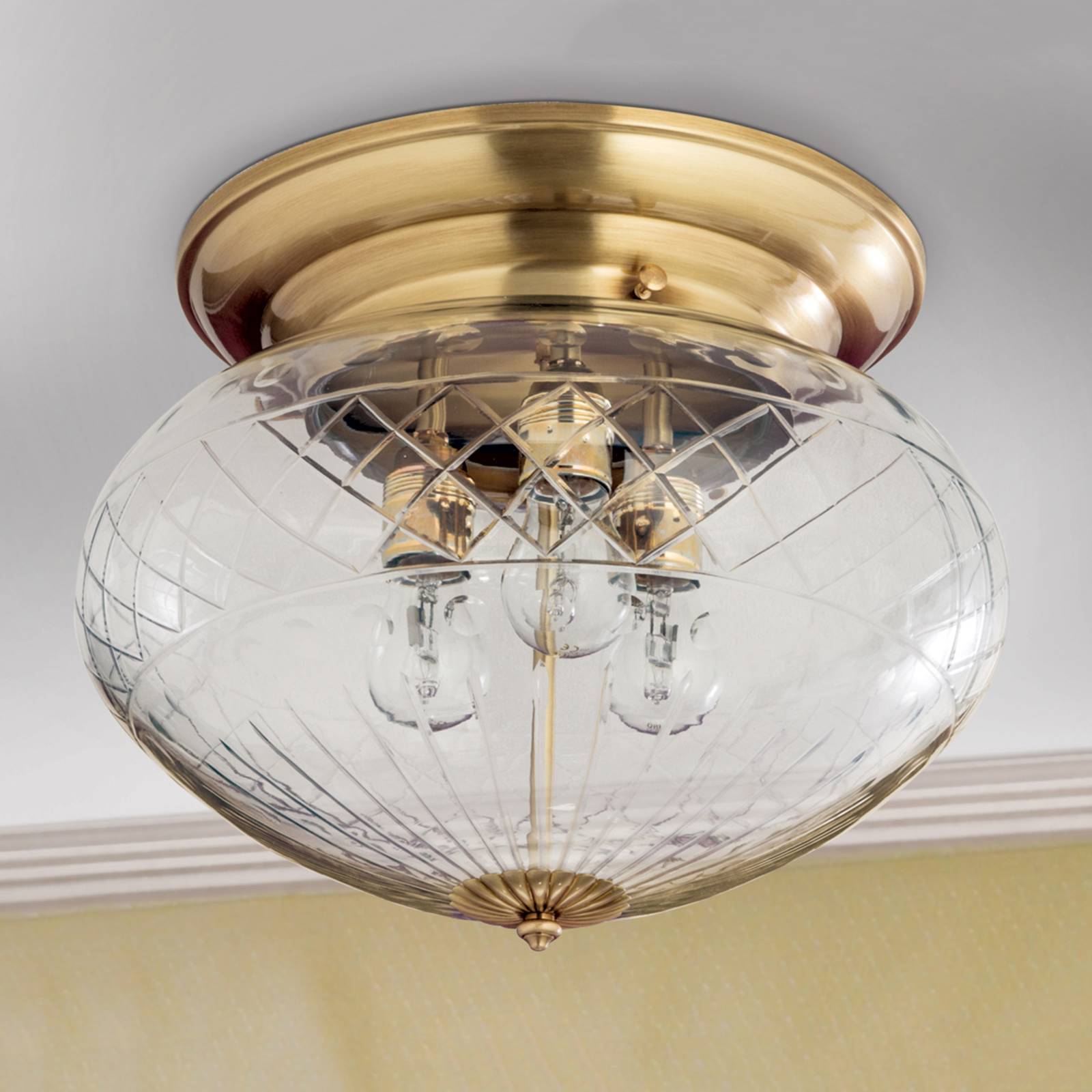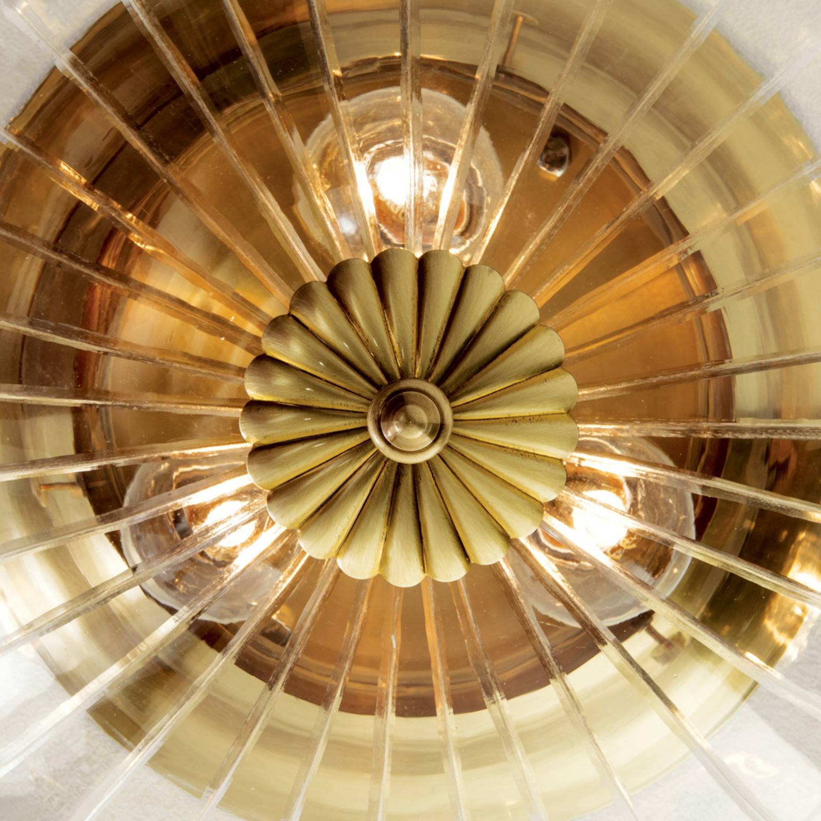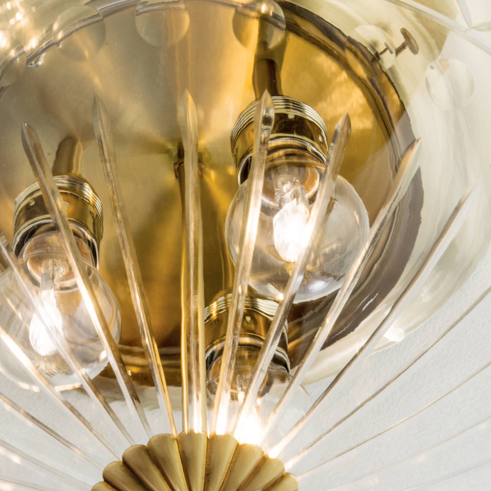 Plafoniera in foglia di bronzo ENNA con vetro trasparente molato a mano Vetro trasparente finemente lavorato con mola diamantata e la superficie in foglia di bronzo dominano l'aspetto di questa pregiata plafoniera che si adatta perfettamente alle abitazioni e case arredate in stile classico. Il baldacchino color bronzo dona a ENNA un aspetto caldo e non per ultimo esclusivo. In queste lampade qualità, eleganza, pregiata lavorazione e durata sono al centro dell'attenzione. Qui la creatività dei designer e l'arte artigianale austriaca si fondono in un prodotto molto apprezzato in tutto il mondo. Dal 1948 le lampade di questo produttore vengono prodotte al 100% in Austria, il che garantisce anche una disponibilità di ricambi pluriennale. Su richiesta disponibile anche in altre dimensioni e superfici.