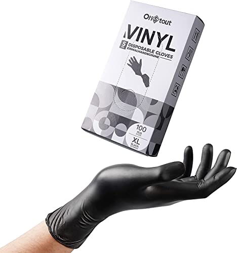 OriStout Guanti usa e getta, colore nero, 5 mil, 100 pezzi, in vinile, usa e getta, senza lattice, senza polvere, per cucinare, tatuaggi, grill