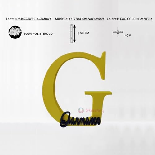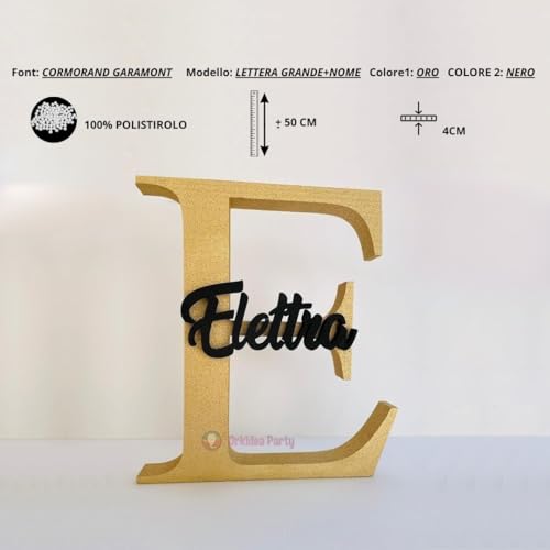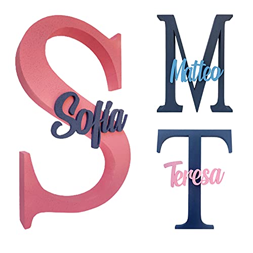 ORKIDEA PARTY Nomi in Polistirolo personalizzabili, Lettera iniziale grande in polistirolo e scritta al centro della lettera in legno come nelle immagini - Idea Regalo - ALTEZZA 50 CM.