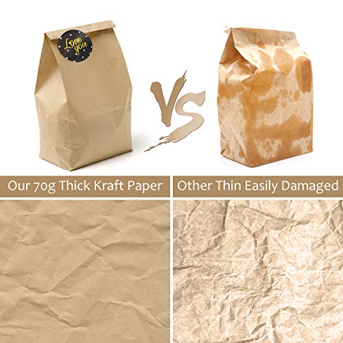 Orlegol Sacchetti di Carta Kraft Marrone, 100 Piccolo Bustine Sacchetti Kraft Mini Sacchetti Regalo di Carta con 120 Adesivi Utilizzato In Feste, Matrimoni, Mercati, Negozi, Caffè (18 * 9 * 5.5cm)