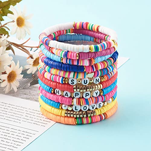 Materiale: questo braccialetto è decorato a mano con perline in vinile di alta qualità e cordino elastico, che è leggero e impermeabile, sicuro e comodo da indossare