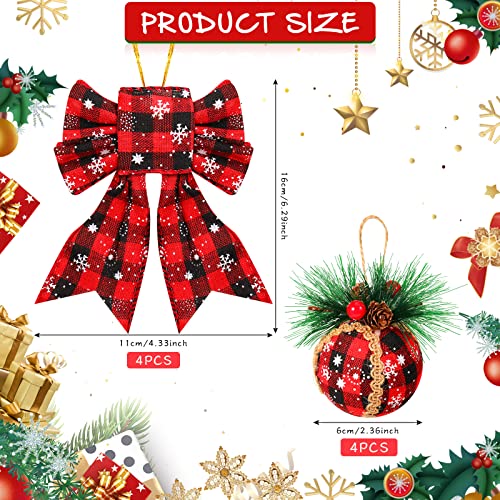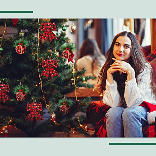 Ornamenti Natalizi di Palla Scozzese Palline di Tessuto di Bufalo Nastro per Fiocchi da Appendere Palla per Albero di Natale con Pigna Fiocco Decorativo per Vacanze (Rosso Nero, 8)