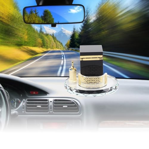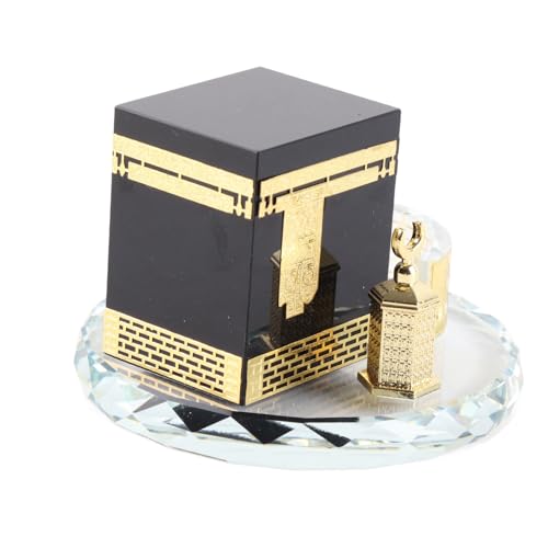Ornamento di cristallo musulmano, modello di caaba dorato in cristallo musulmano Artigianato di edificio islamico per la decorazione del veicolo da tavolo da ufficio domestico Regalo di souvenir
