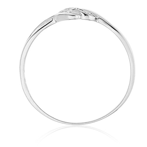 Ornami Glamour - Grazioso anello in oro bianco 9k, con motivo a onde e montatura in diamanti