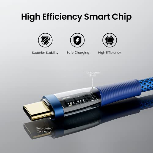 ORNARTO Cavo USB C a USB C [1m], PD 60W 20V/3A Cavo Tipo C Nylon di Ricarica Rapida Type-C a USB-C Compatibili con Macbook Air/Pro, iPad Pro, Samsung Galaxy S22 S21 Note, Huawei, Blu