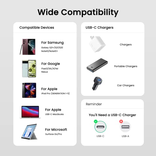 ✅【Ampia compatibilità】Cavo da USB c a USB c è compatibile con quasi tutti i dispositivi con porta USB-C. PC: MacBook Pro, MacBook Air, iPad Pro, iPad Air 4, iPad Mini 2021, Dell XPS 15/13, Matebook, Chromebook, Ps5, Switch Smartphone: Mi 12 11, Samsung Galaxy S22 S21 S20 S10 A20e A12 A50, Huawei P40 P30 (✘✘✘ non supporta Huawei SuperCharge, OnePlus DASH Charge)