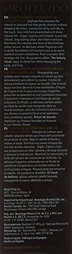 Ingredienti: Aqua (Water), Sodium Laureth Sulfate, Cocamide DEA, Cocamidopropyl Betaine, Parfum (Fragrance), PEG-7 Glyceryl Cocoate, Lauryl Glucoside, Argania Spinosa Kernel Oil, Cyperus Esculentus Root Oil, Linum Usitatissimum (Linseed) Seed Oil, Glycerin, Glyceryl Laurate, Poliquaternium-10, Diazolidinyl Urea, Sodium Chloride, Citric Acid, Disodium EDTA, Methylparaben, Propylparaben, CI 15985 (Yellow 6), CI 42090 (Blue 1)