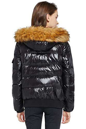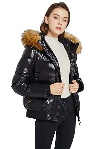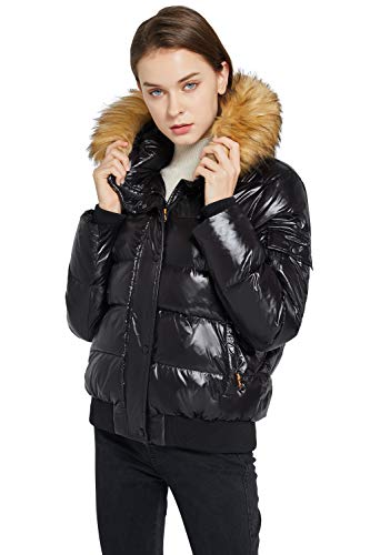 OROLAY Piumino Corto da Donna con Cappuccio Cappotto Imbottito Lucido Caviale XS