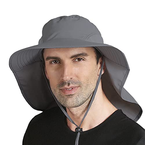 OROLAY Unisex Cappelli da Esterno Protezione Solare Cappello da Pesca Falda a Tesa Larga Falda UPF 50+ Grigio Scuro F