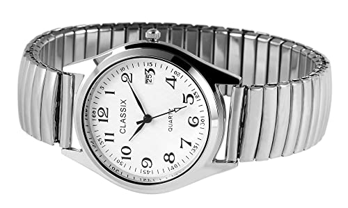 Clas Six Orologio da uomo analogico orologio da polso al quarzo Argento Metallo di circa 36 mm x 9 mm Metallo con Nastro Color Argento Larghezza 18 mm e quadrante in Bianco rp7112200001