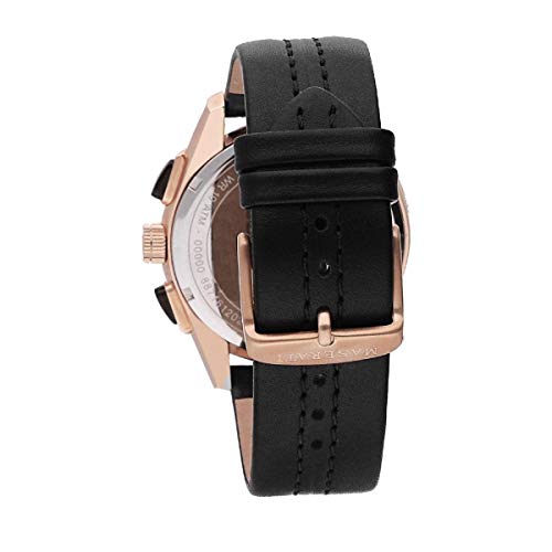 Elemento caratterizzante: i contatori in linea, chiaro riferimento alla strumentazione di bordo, e le cuciture dei cinturini che richiamano la lavorazione artigianale dei ricercati interni in pelle delle auto di Casa Maserati.