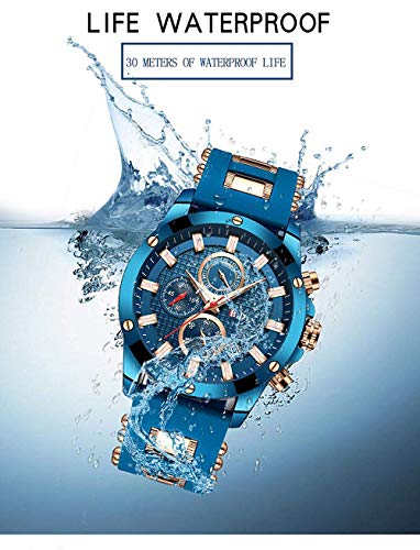 Orologio da uomo con cronografo, analogico, al quarzo, con cinturino in gomma, datario, impermeabile, sportivo, da uomo
