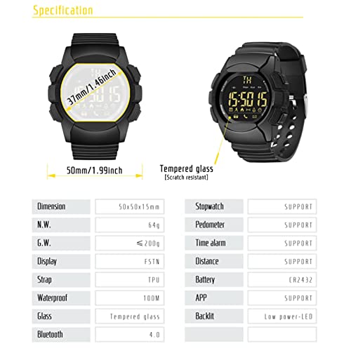 Orologio versatile: questo orologio sportivo digitale da uomo è molto versatile. Dispone di un allarme temporale, cronometro, timer, modalità data 12/24 ore, calorie, contapassi, promemoria di chiamata, SNS, fotocamera remota, condivisione sociale e molto altro ancora.