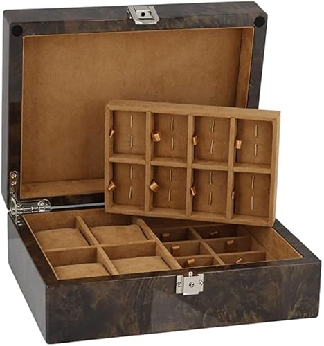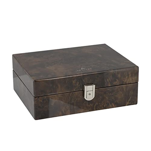 Orologio e gemello Collectors Box 16 coppia di gemelli da polso + 4 in scuro Burl legno con coperchio solido by Aevitas