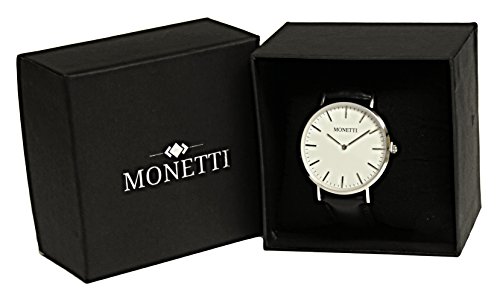 Orologio classico Monetti dal design intramontabile con cinturino in pelle nera, in confezione regalo