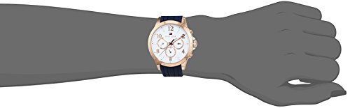 La cassa è fatta in acciaio inox placcata in oro rosa e cinturino in silicone blu navy