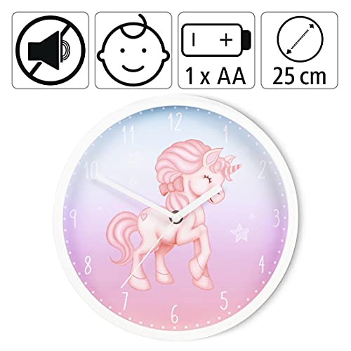 Hama Orologio da parete per bambini Magical Unicorn (silenzioso al quarzo, display analogico con allegro design per bambini, Ø 25 cm), colorato
