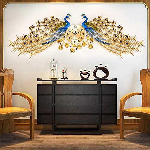 Orologio da parete in cristallo di pavone a due teste, orologio da parete creativo atmosfera semplice orologio da tavolo appeso, orologio da parete in quarzo silenzioso per la decorazione della casa