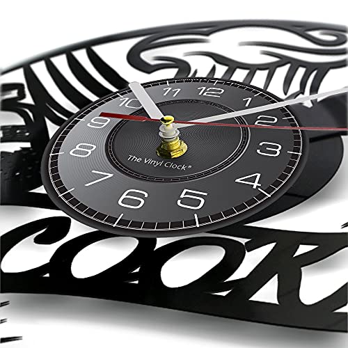 Orologio da parete a tema cucina personalizzabile, realizzato in vero vinile, con scritta "NO ticchettio" da cuoco