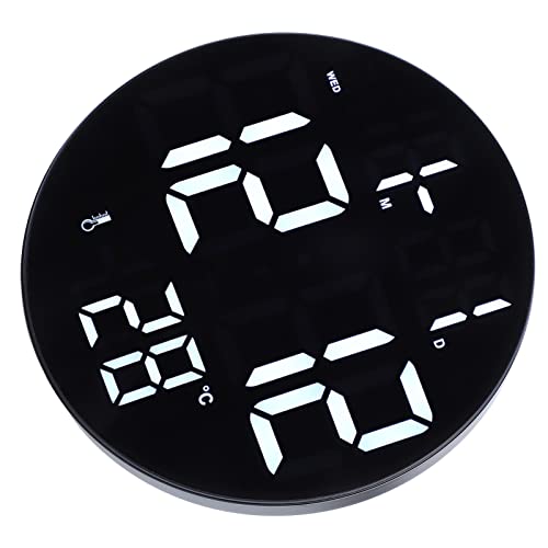 Orologio da Parete Digitale Rotondo Lcd da Soggiorno Telecomando Sospeso Classro 24 Ore LED Moderno 12 Montaggio a Parete 5 Livelli di Luminosità 2 Formati di Visualizzazione