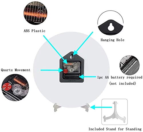 Facile da usare: puoi appenderlo al muro o metterlo sul tavolo, sarà un buon orologio artistico. Vieni con un gancio, ampia fessura sul retro per appenderlo facilmente. si prega di utilizzare una normale batteria al carbone.