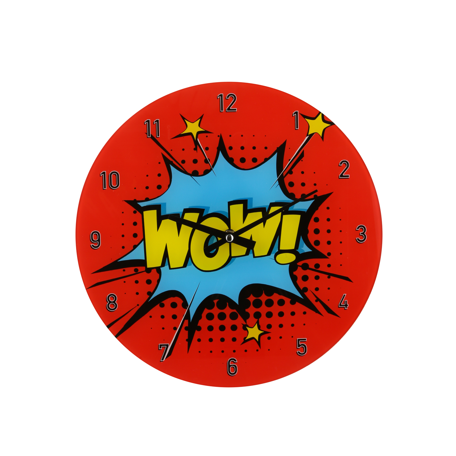 Personalizza gli ambienti di casa aggiungendo elementi in linea con la tua personalità allegra e unica, come questo coloratissimo orologio! Il design rosso con fumetto e scritta Wow è un omaggio alla Pop Art e arrederà con uno stile giovane e fresco il tuo appartamento, dalla cameretta al soggiorno, o anche l'ufficio. Avrai sempre ben in evidenza l'ora così non rischierai di arrivare in ritardo ai tuoi appuntamenti. Una bella idea regalo per gli amici e i colleghi, soprattutto quelli poco puntuali! L'orologio si appende facilmente alla parete tramite supporto posto sul retro e funziona con pile AA non incluse. Diametro quadrante tondo: 30 cm.
