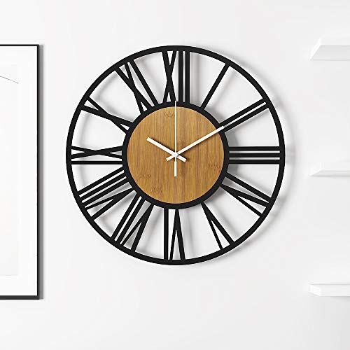 Orologio da parete rotondo da nero per l'arredamento del soggiorno, numeri romani vintage, silenzioso, senza ticchettio, orologi da appendere per la casa il giardino l'ufficio, la decorazione-33CM