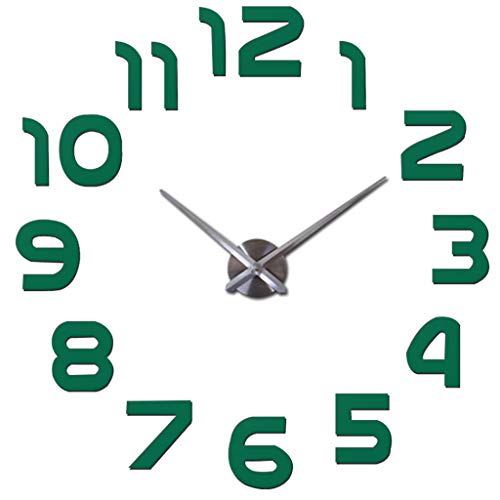 Orologio da Parete Silenzioso con I Numeri Fai da Te Adesivi, Facile da Montare Effetto 3D Riempire Vuoto Parete Moderno Adesivo Orologio Parete Decorazione per Casa Ufficio Hotel (Verde)
