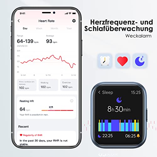 【Lunga durata della batteria e impermeabilità IP68】La durata della batteria dello smartwatch Android fino a 7 giorni, 30 giorni in standby e solo 2 ore per una ricarica completa. Grazie agli orologi fitness impermeabili IP68, puoi indossarlo in piscina.
