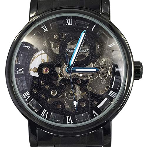 City - orologio da polso, con cassa nera, quadrante con movimento meccanico automatico a vista e cinturino in acciaio inox