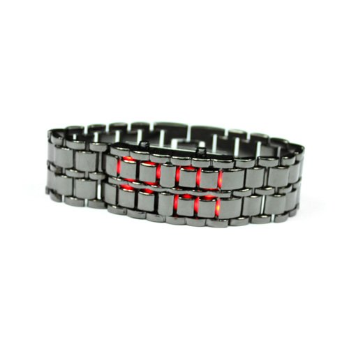 Orologio da polso, digitale, a LED, con cinturino in acciaio (Black-Red Led)