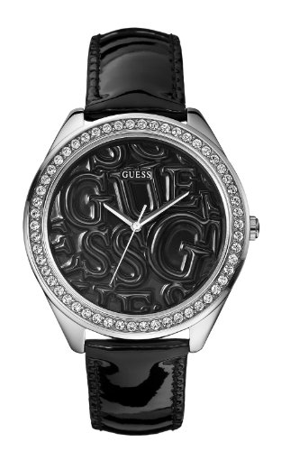Orologio da polso da donna nero con monogramma GUESS e cristalli mod. W85098L4