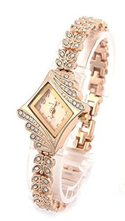 Orologio da polso, da donna, al quarzo, quadrante romboidale, stile elegante, con strass e placcatura in oro