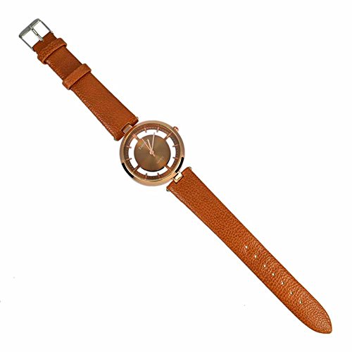Bellissimo orologio in similpelle tondo quarzo rosa hollow brown - Analog Quartz - quadrante rosa dorato e sfondo marrone dorato