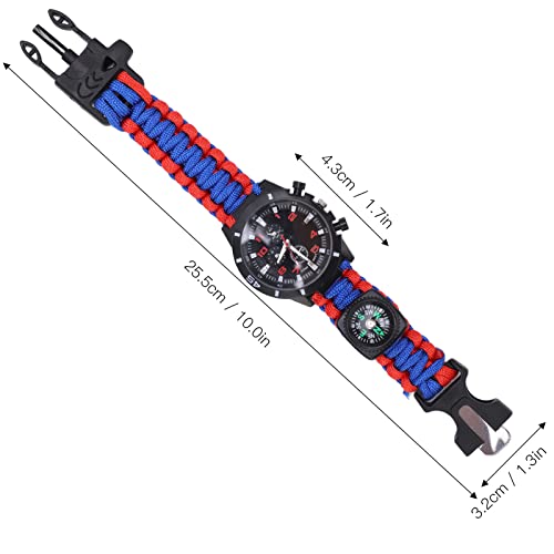 Orologio da polso di sopravvivenza, 6 in 1 Braccialetto di sopravvivenza Paracord Attrezzatura da esterno multifunzionale per uomo e donna Attività di sopravvivenza di emergenza(rosso e blu)
