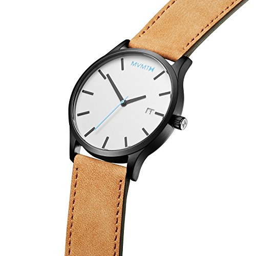 Elegante orologio da uomo MVMT con quadrante bianco, lancetta dei secondi blu e logo MVMT