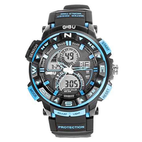 Gobu - Orologio sportivo multifunzione a LED, multicolore, analogico digitale, impermeabile e resistente all'acqua con allarme, cronografo, cronometro, timer, Blue