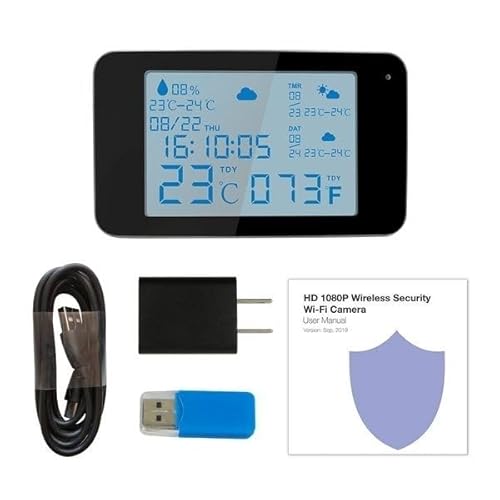 Questo orologio stazione meteo è anche un dispositivo di sorveglianza con una telecamera spia WIFI. Quest'ultimo è dotato di un rilevatore di movimento, una visione a infrarossi, un sistema audio bidirezionale.