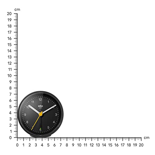 Orologio Sveglia Analogico Classico Braun con Funzione Snooze e Luce, Movimento al Quarzo silenzioso, Suono Sveglia Beep con crescendo, colore nero, modello BC12B.