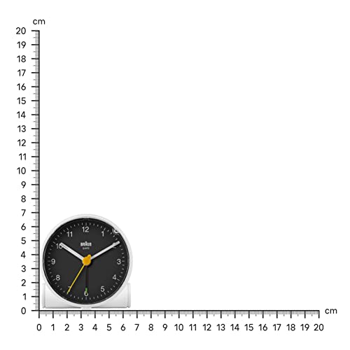 Orologio Sveglia Analogico Classico Braun con Snooze e Luce, Movimento al Quarzo silenzioso, Suono Sveglia Beep con crescendo, colore nero e bianco, modello BC02WB.
