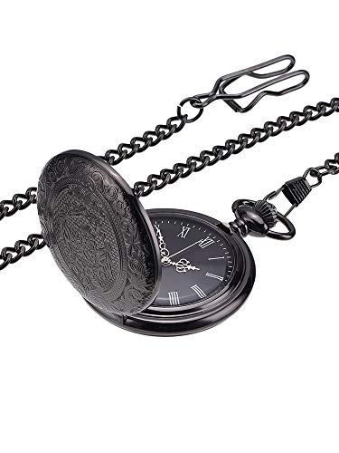 Orologio da Tasca Nero Classico per gli Uomini Orologio con la Catena e la Lancetta d'Argento