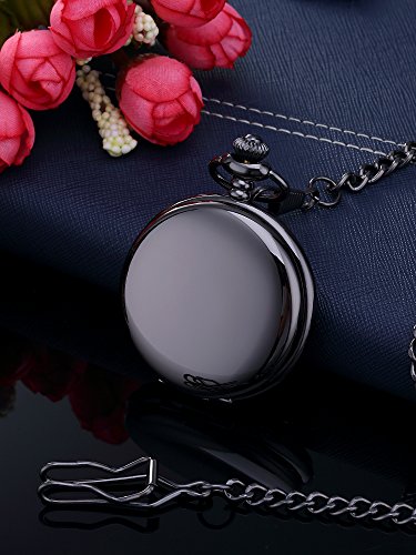 Orologio da Tasca Liscio Antico al Quarzo con Catena in Acciaio Nero