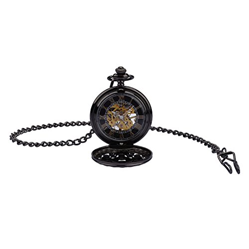 Orologio da tasca da uomo puntatore analogico Movimento meccanico a carica manuale al quarzo orologio da tasca con catena orologio da uomo oro nero