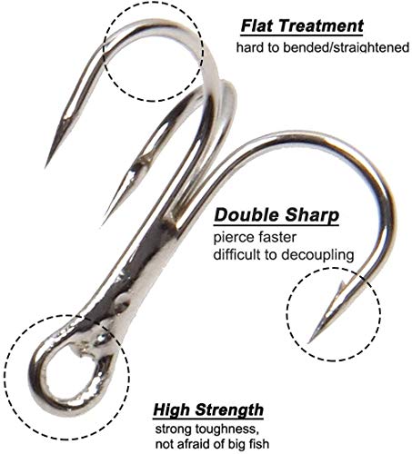 Gli ami da pesca Treble sono realizzati in acciaio al carbonio e sono rivestiti in nichel argentato. Assicuratevi di elevata resistenza, affidabilità e durata.
