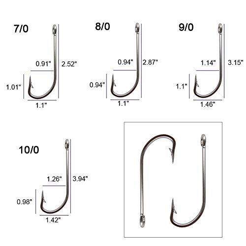 Grande potenza: 2 x ganci da pesca in acciaio inox O'shaughnessy più pesanti, 1 x gancio da pesca lungo è un gancio collaudato e popolare, che viene utilizzato per una vasta gamma di pesca in mare e in mare. Stile tradizionale in acqua salata per la pesca a traino o per esche universali.