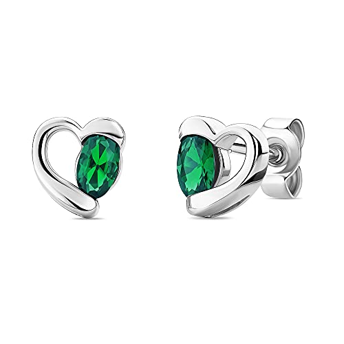 Orovi 9 carati (375) orecchini da donna a forma di cuore, oro giallo/oro bianco con gemma/pietra portafortuna rubino/smeraldo orecchini, Oro, Rubino