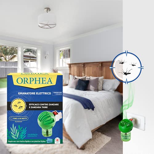 ORPHEA Insetticida, Emanatore Elettrico Contro Gli Insetti, con Eco Sensor Ad Attivazione Notturna & Dopopuntura, Gel Ad Azione Immediata Contro Punture di Zanzare, Vespe Ed Altri Insetti